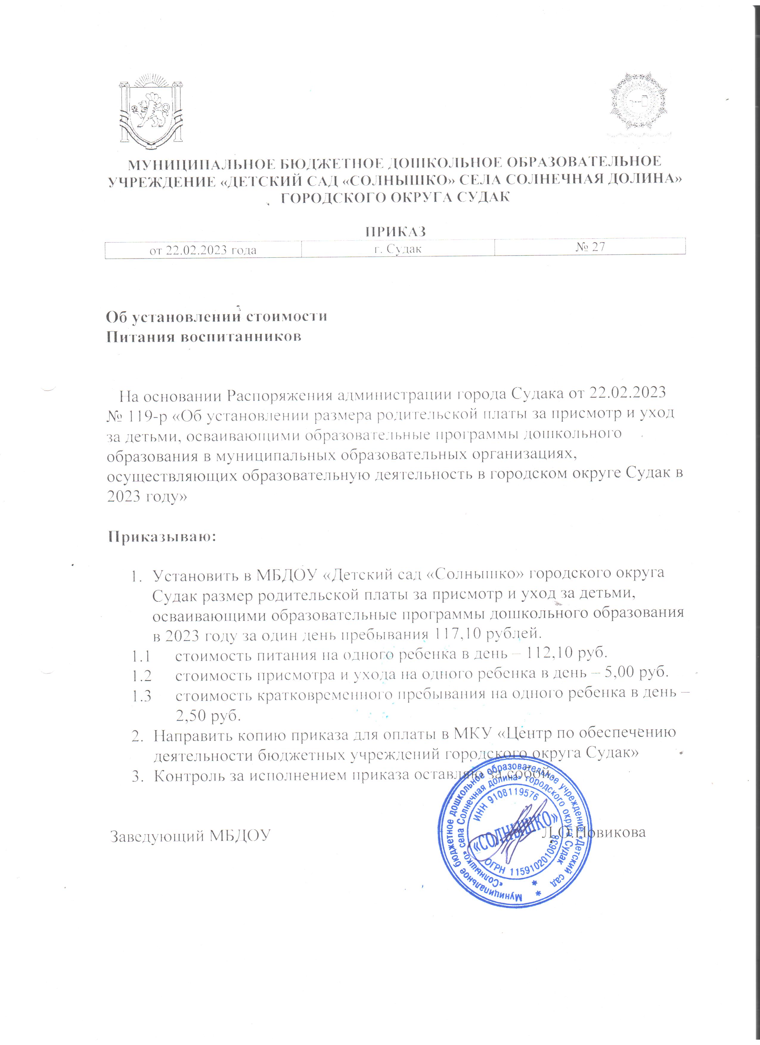 Муниципальное бюджетное дошкольное образовательное учреждение «Детский сад «Солнышко» села Солнечная Долина» городского округа Судак Республики Крым