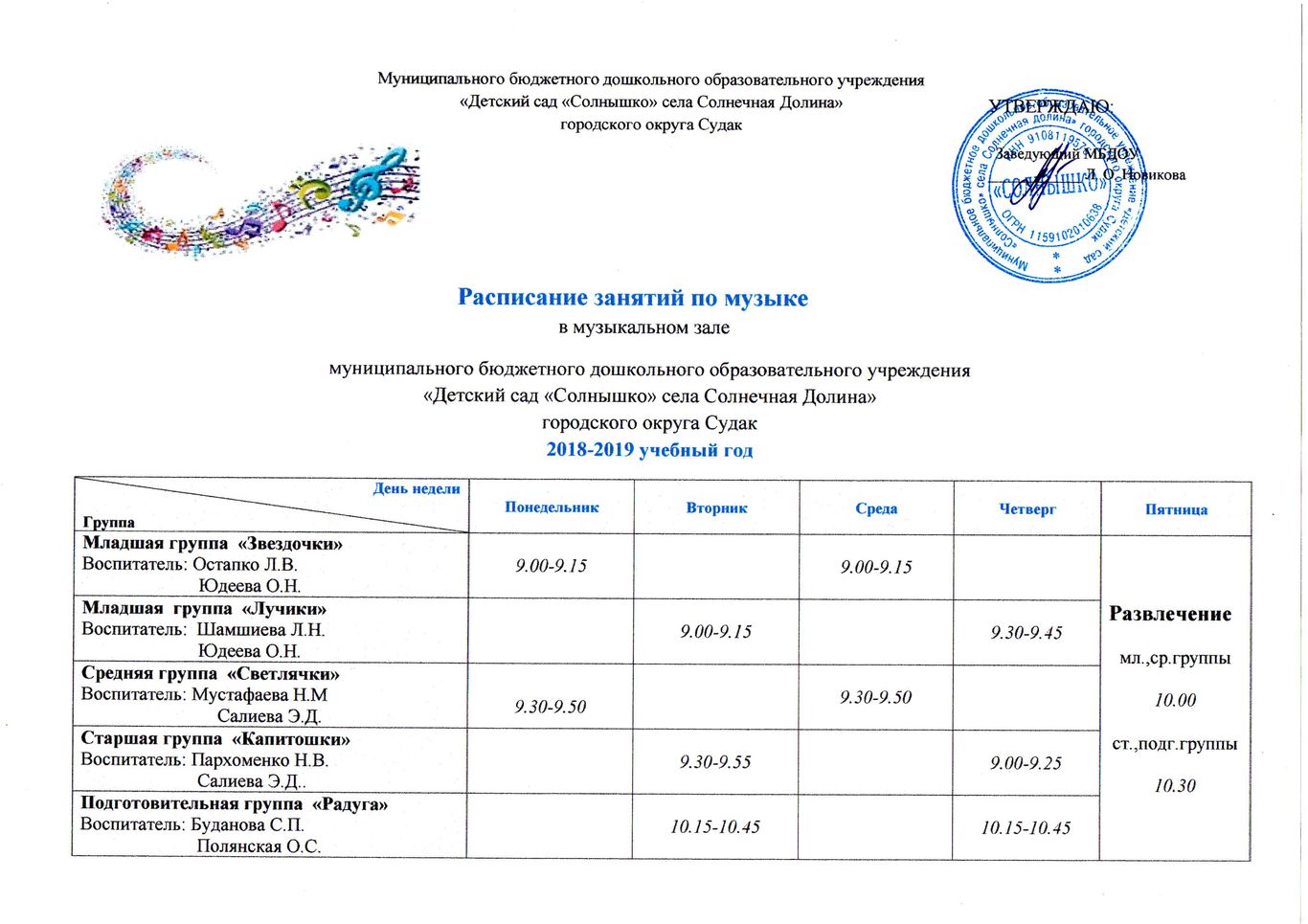 Муниципальное бюджетное дошкольное образовательное учреждение «Детский сад «Солнышко» села Солнечная Долина» городского округа Судак Республики Крым